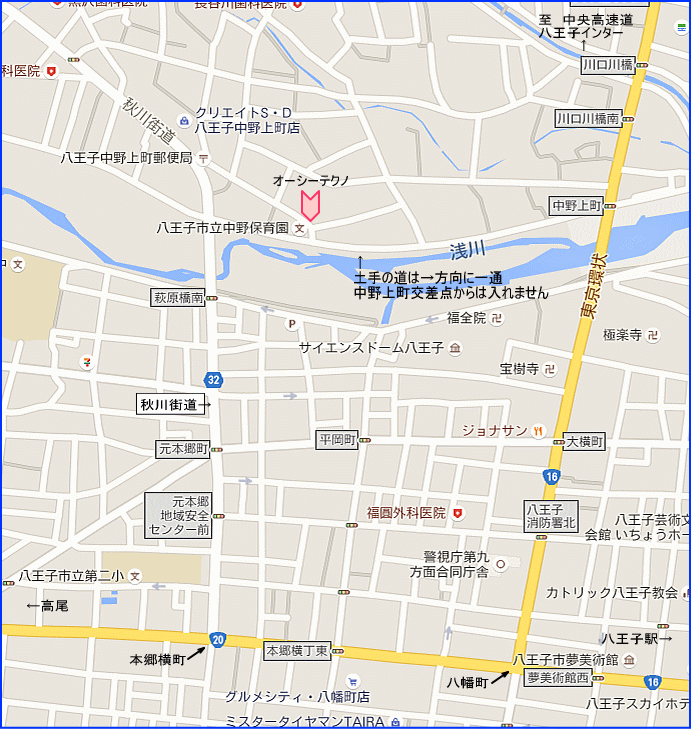 八王子インターからお越しの場合は、以下のルートがスムーズです